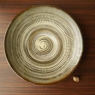 手作りの魅力が息づく、坂本庸一窯の6寸皿。刷毛目模様に螺旋を描いたデザインが個性溢れる。全て異なる仕上がりは、自然な風合いを楽しむ心をくすぐる。