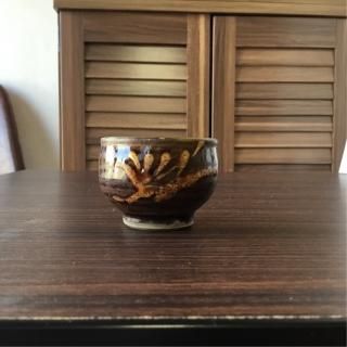 手作りの小袋道明窯製ぐい呑。赤こげ茶地に青白い釉薬が斬新。全く同じものはない唯一無二の逸品。直径6.5cm、高さ6cm、内容量90ml。旨い酒が一層美味しく感じること間違いなし。