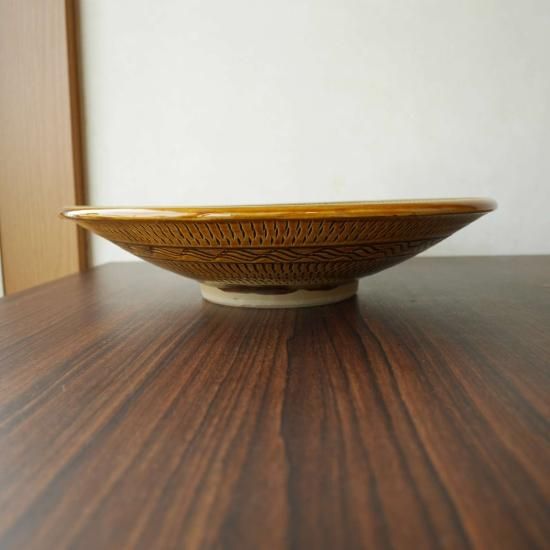 10寸深皿(尺) A・茶とびかんな櫛目現品