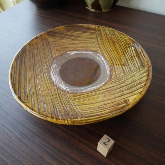 明るい茶色が鮮やかなモダンなデザインのメイン大皿です。食との相性抜群で食卓がとても引き締まります。