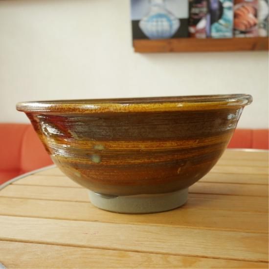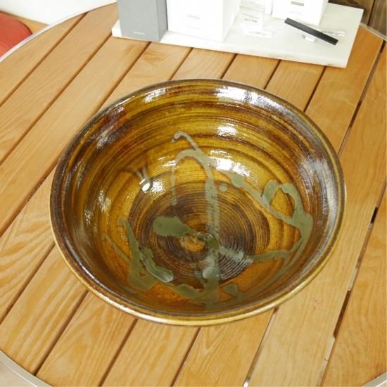 ビッチリ焼けていて、深さが有りどっしりした素敵な盛り鉢です。朝夫窯のこの手の大きな鉢物は、多少歪みが有りますがこちらは歪みも少なくので今回の特におすすめな器です。