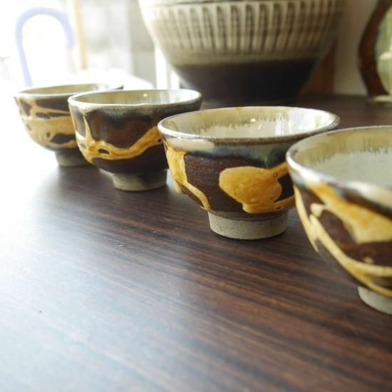 小鹿田焼は基本的には全て手作業です。轆轤をまわし1つ1つ手作りです。登り窯で焼いているので全く同じものは1つとしてないです。窯に入れて置く位置、入れる窯の順位、その時の炎の具合等色々な要素で同じように作り同じ窯で焼いても仕上がりは1つ1つ違います。機械で作っている様なキッチリした見た目のものが好きな方、細かい事(デザインの違い、歪み、ザラつき、色むら、高台のひっつき跡、ひっつき傷を含めた窯傷等)が気になる方はくれぐれもご購入をお控え下さいませ。ご理解宜しくお願い致します。
