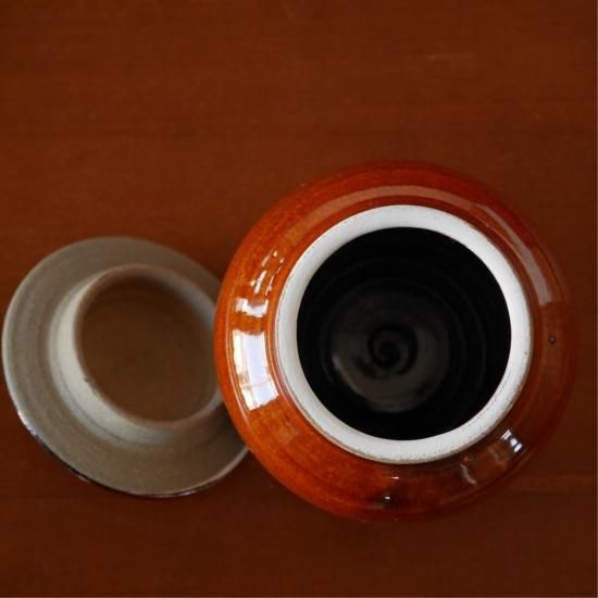 茶色の釉薬がとても美しい丸っとしてかわいい小壷です。