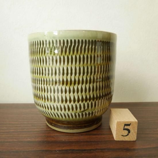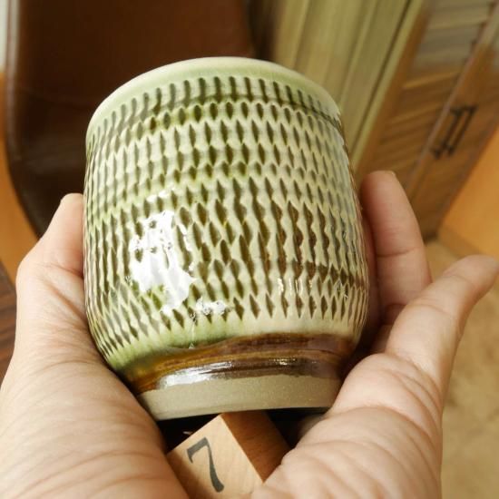 小鹿田焼は基本的には全て手作業です。轆轤をまわし1つ1つ手作りです。登り窯で焼いているので全く同じものは1つとしてないです。窯に入れて置く位置、入れる窯の順位、その時の炎の具合等色々な要素で同じように作り同じ窯で焼いても仕上がりは1つ1つ違います。機械で作っている様なキッチリした見た目のものが好きな方、細かい事(デザインの違い、歪み、ザラつき、色むら、高台のひっつき跡、ひっつき傷を含めた窯傷等)が気になる方はくれぐれもご購入をお控え下さいませ。ご理解宜しくお願い致します。