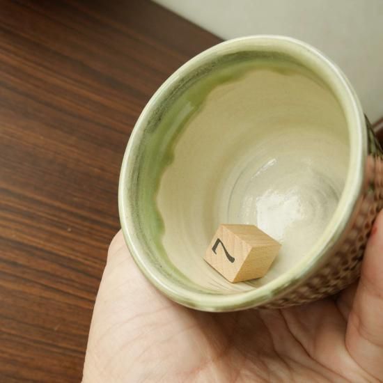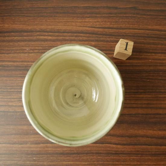 小袋製陶所の人気定番品です。ベースは薄い青緑の釉薬ですが、窯変して奥深い色味が味わえます。