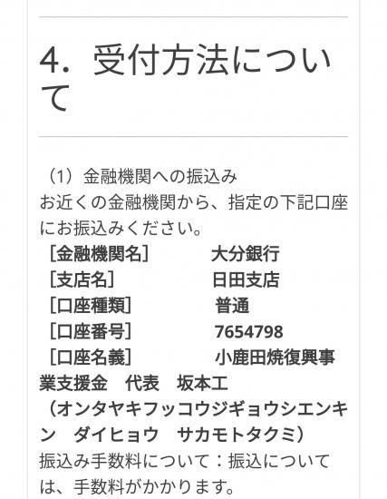 当ショップの売り上げ金はこちらの小鹿田焼協同組合の公式口座に、直接寄付させていただいております。