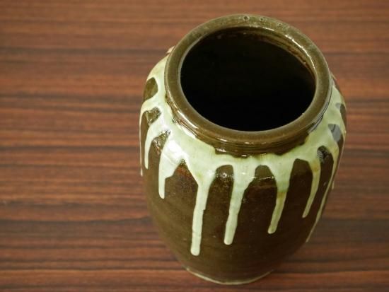 お箸、お玉等の長い道具入れから、花器、漬け物樽等色々な用途でお使い下さいませ。口部分に釉薬が弾けたポツポツが有りますが尖ったりしておりませんのでご使用には問題無いと思いますよく有る現象です。。