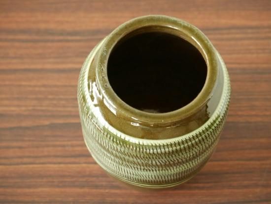 お箸、お玉等の長い道具入れから、花器、漬け物樽等色々な用途でお使い下さいませ。口部分に釉薬が弾けたポツポツが有りますが尖ったりしておりませんのでご使用には問題無いと思いますよく有る現象です。
