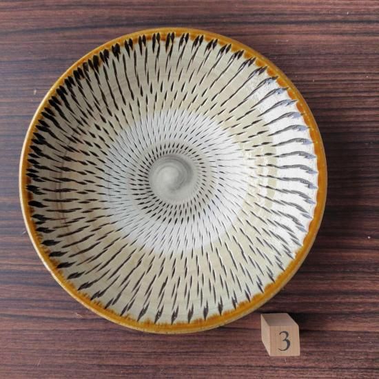 小鹿田焼は基本的には全て手作業です。轆轤をまわし1つ1つ手作りです。登り窯で焼いているので全く同じものは1つとしてないです。窯に入れて置く位置、入れる窯の順位、その時の炎の具合等色々な要素で同じように作り同じ窯で焼いても仕上がりは1つ1つ違います。機械で作っている様なキッチリした見た目のものが好きな方、細かい事(デザインの違い、歪み、ザラつき、色むら、高台のひっつき跡、ひっつき傷を含めた窯傷等)が気になる方はくれぐれもご購入をお控え下さいませ。