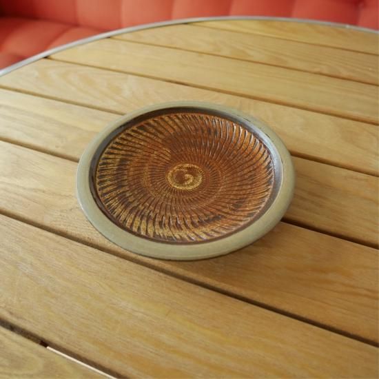 伏せ合わせで焼かれた小皿です。深さは余りなく平たい目なので和菓子や、お新香等でお楽しみ頂けると思います。