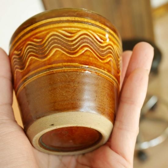 ナミナミシリーズのそば猪口です。すっぽりと手に収まるサイズなので女性でも安心です。茶碗蒸し、アイスクリームカップや焼酎カップ、湯のみとしても楽しくお使いいただけると思います。炎の具合での、裏表の違いをお楽しみくださいませ。