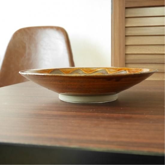 今回からお取り扱いのとびかんなに、櫛目のお皿です色々と合わせやすいと思います。ふちが少しザラザラだったり釉薬が乗りきっていない感じが有りますが、義孝窯の物はこんな感じなので難あり扱いでは無いです。