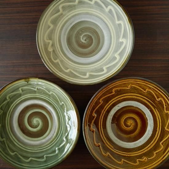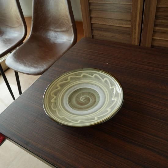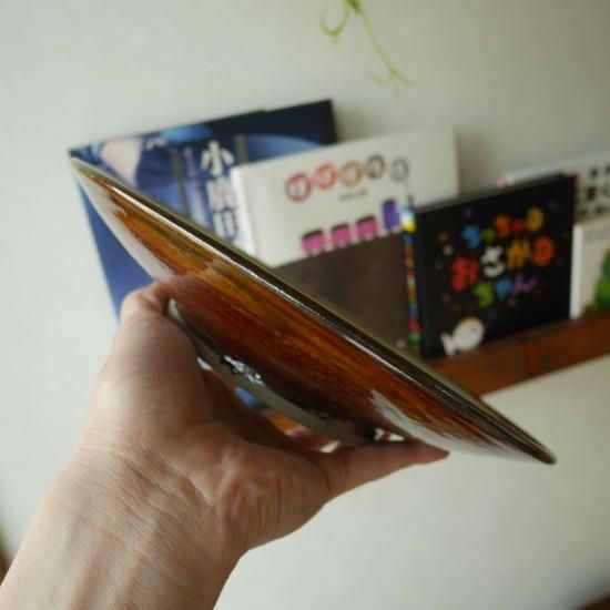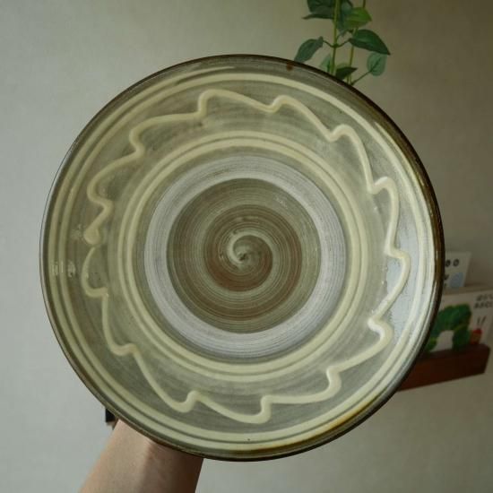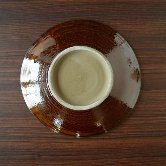 小鹿田焼では比較的平たい目で素敵なメインディッシュです。裏は艶っとした茶色で格好いいです。