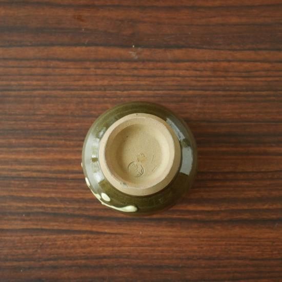 縁起物として常緑の松葉をイッチンに緑釉薬です。レトロであり新しくも感じるぐい呑みです。徳利やお皿と合わせて晩酌セットにしてみてはいかがでしょう。