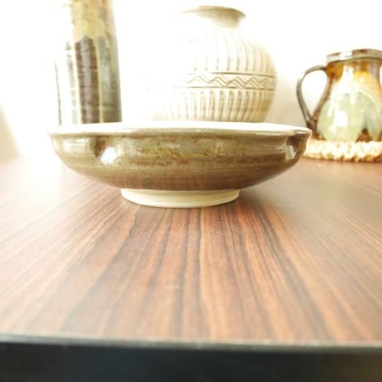 小袋窯で梅鉢と呼ばれているカタチの切りたち鉢(菓子碗)です。煮物等の盛鉢におすすめです。1枚焼きなので重ね焼きの蛇の目が無い贅沢な器です。乾いていると解りませんが、小袋窯や一部の窯元さんに有る現象の1つとして、濡らすとすっと浮き出る極々浅いクラック(貫入とは別の現象です)があります。ご使用には問題無いです。