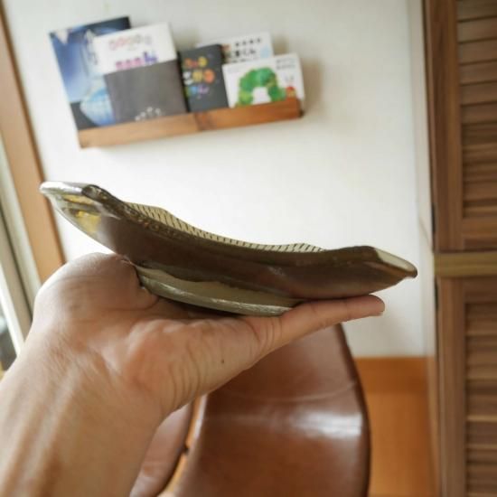 作陶の工程途中で上と下部分を切り取って横長にしてある切り皿です。おにぎり、だし巻き、刺し身や、焼き魚などなど幅広い用途でお使いいただけると思います。横長なので食卓に変化と、効率的に配置出来る便利さも有りオススメです。