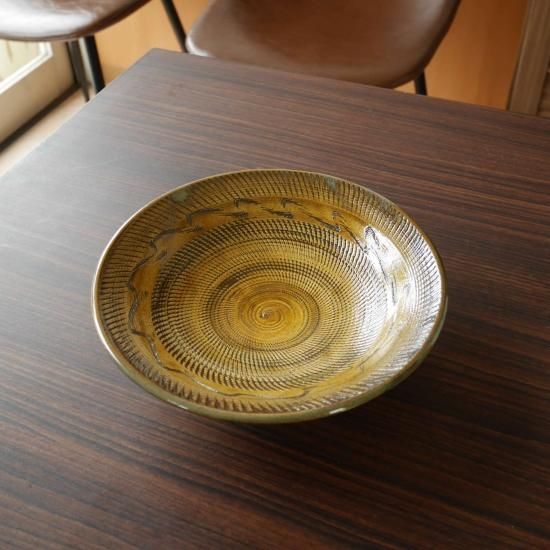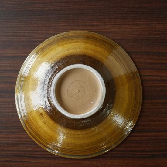裕之さん定番のデザインの7寸皿です。上乗せ分なので蛇の目が無いです。黄色味の強い茶色がとてもよい感じでおすすめです。