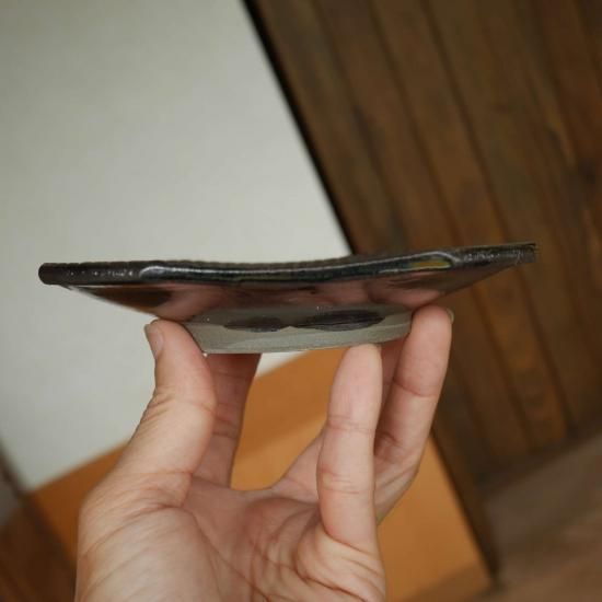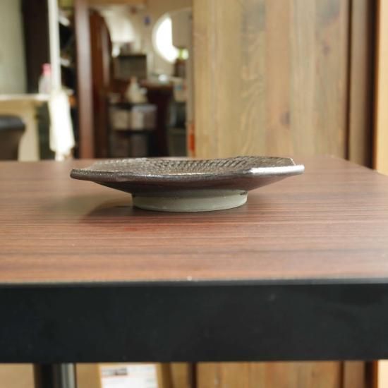 深い焦げ茶色で、4面を切り落としたかたちの切り皿です。食卓に変化をつけれて、幅広い用途でお使いいただけると思います。