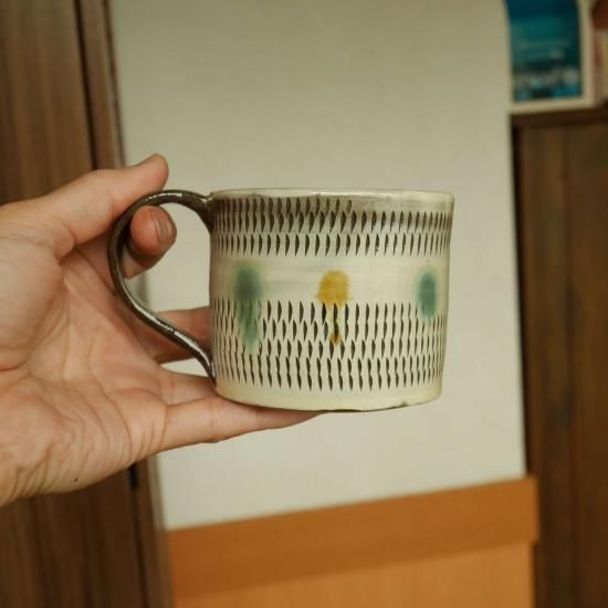 ドットの点打ちがカワイイカップです。デスクワークや在宅勤務が増え、電子機器がダメにならない為にも安定性有るカップの方が重宝します。