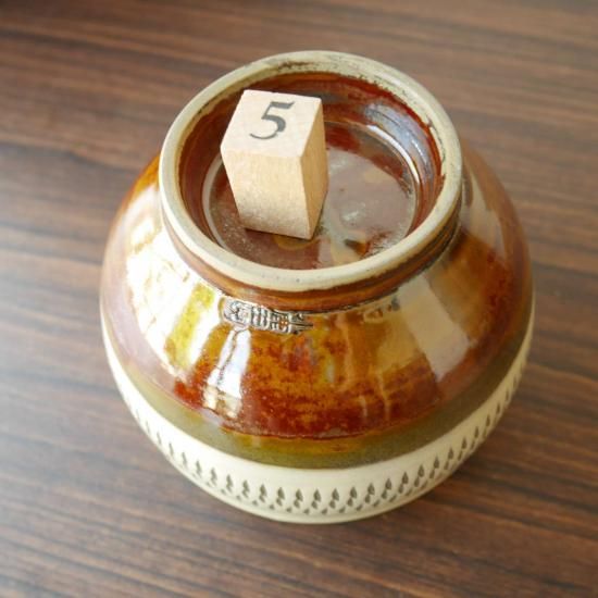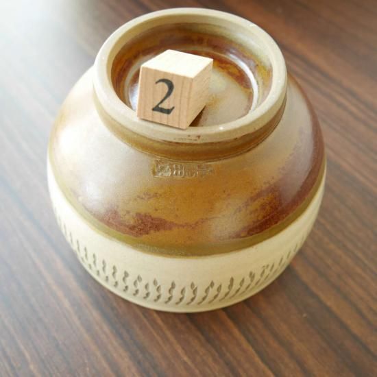 小鹿田焼は基本的には全て手作業です。轆轤をまわし1つ1つ手作りです。登り窯で焼いているので全く同じものは1つとしてないです。窯に入れて置く位置、入れる窯の順位、その時の炎の具合等色々な要素で同じように作り同じ窯で焼いても仕上がりは1つ1つ違います。機械で作っている様なキッチリした見た目のものが好きな方、細かい事(デザインの違い、歪み、ザラつき、色むら、高台のひっつき跡、ひっつき傷を含めた窯傷等)が気になる方はくれぐれもご購入をお控え下さいませ。