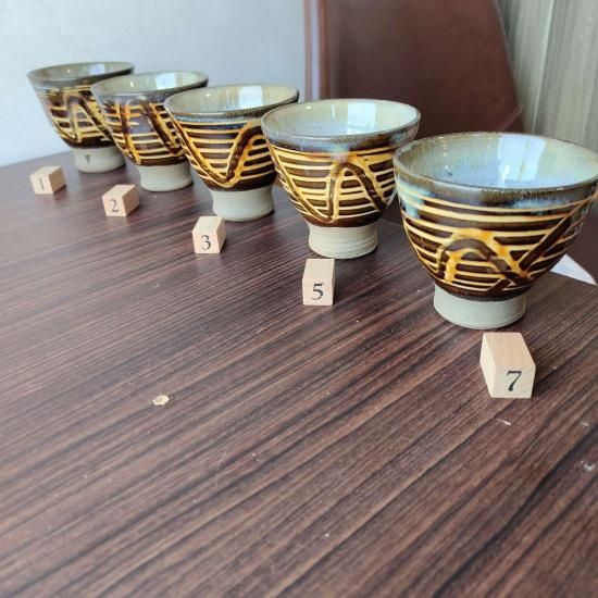 小鹿田焼は基本的には全て手作業です。轆轤をまわし1つ1つ手作りです。登り窯で焼いているので全く同じものは1つとしてないです。窯に入れて置く位置、入れる窯の順位、その時の炎の具合等色々な要素で同じように作り同じ窯で焼いても仕上がりは1つ1つ違います。機械で作っている様なキッチリした見た目のものが好きな方、細かい事(デザインの違い、歪み、ザラつき、色むら、高台のひっつき跡、ひっつき傷を含めた窯傷等)が気になる方はくれぐれもご購入をお控え下さいませ。ご理解宜しくお願い致します。