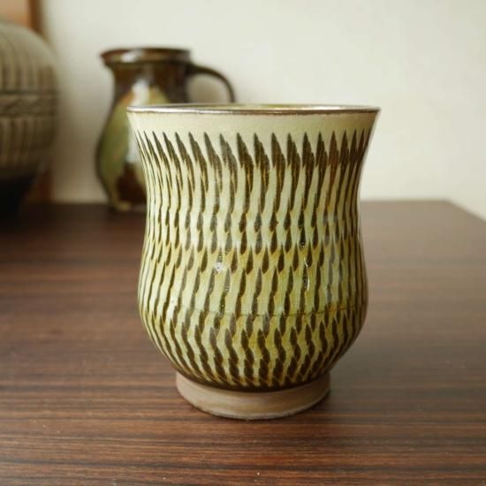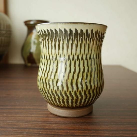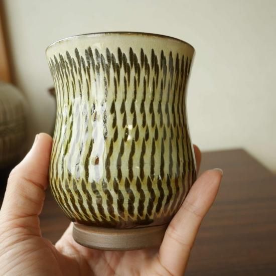 大きさの感じはお寿司屋さんで使っている様な大きめの湯のみです。
