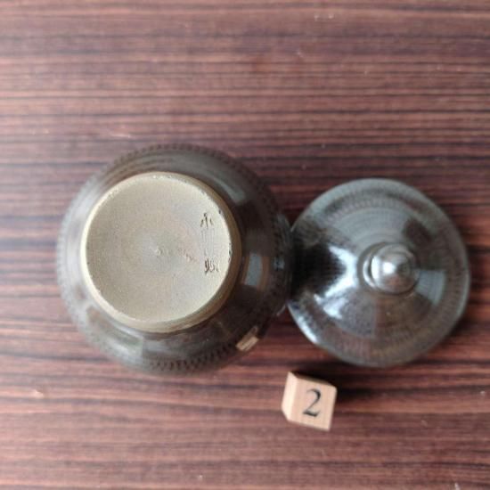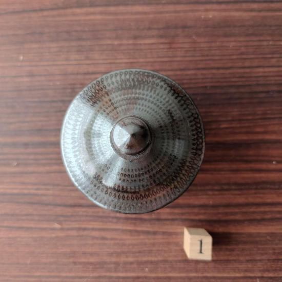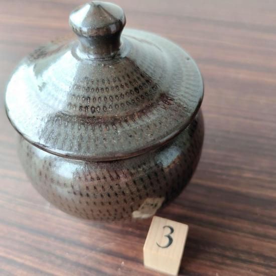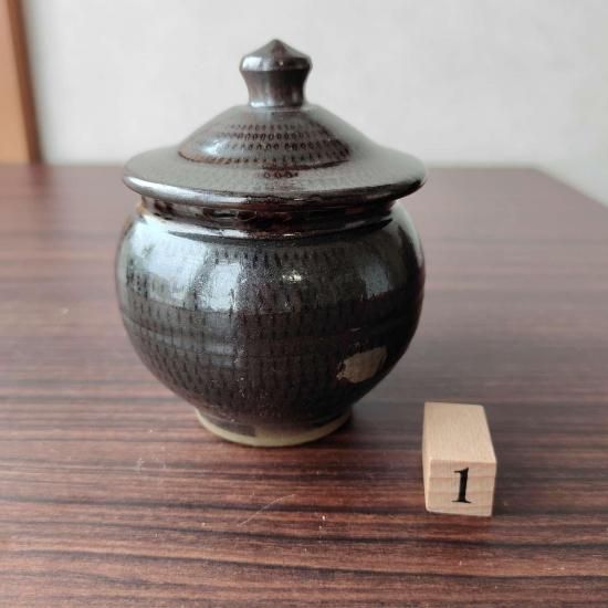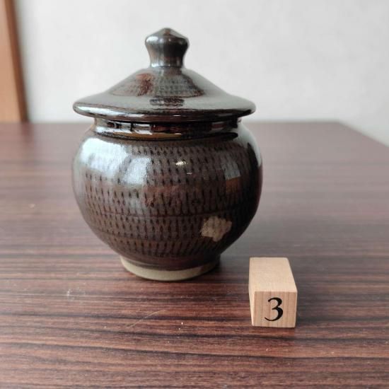 白化粧土無しの、とびかんなの黒釉薬(ダークブラウン)小壷です。
