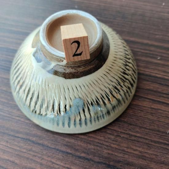 小鹿田焼は基本的には全て手作業です。轆轤をまわし1つ1つ手作りです。登り窯で焼いているので全く同じものは1つとしてないです。窯に入れて置く位置、入れる窯の順位、その時の炎の具合等色々な要素で同じように作り同じ窯で焼いても仕上がりは1つ1つ違います。機械で作っている様なキッチリした見た目のものが好きな方、細かい事(デザインの違い、歪み、ザラつき、色むら、高台のひっつき跡、ひっつき傷を含めた窯傷等)が気になる方はくれぐれもご購入をお控え下さいませ。ご理解宜しくお願い致します。