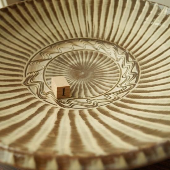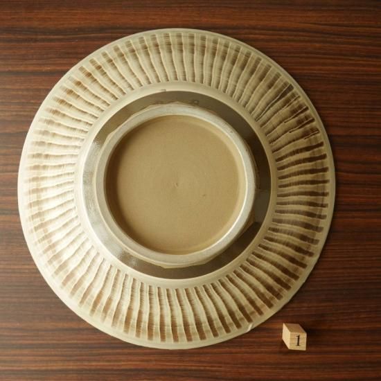 白地に打ち刷毛目、櫛目模様が施された立派な尺皿です。メインの大皿料理は勿論、お鍋の具材皿として贅沢にお楽しみいただけます。