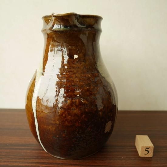 飴色ベースに広がりながら雪崩れた白釉薬がとても美しいです。この位の大きさが色々と用途有り便利です。とてもいい仕上がりです。