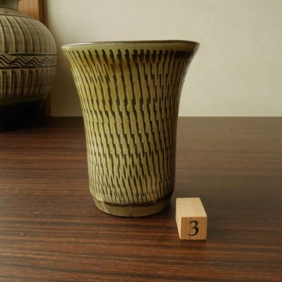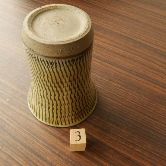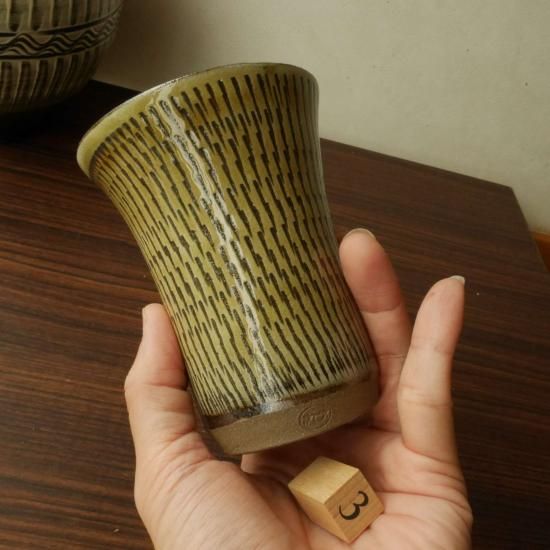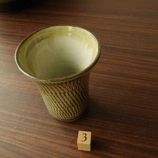 良く焼けて、茶色身有る緑のとびかんなのグラスです。