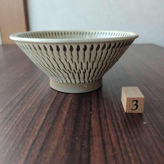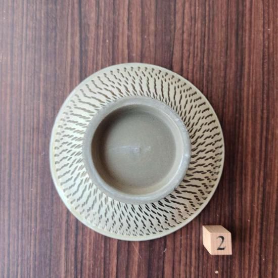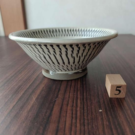 小鹿田焼は基本的には全て手作業です。轆轤をまわし1つ1つ手作りです。登り窯で焼いているので全く同じものは1つとしてないです。窯に入れて置く位置、入れる窯の順位、その時の炎の具合等色々な要素で同じように作り同じ窯で焼いても仕上がりは1つ1つ違います。機械で作っている様なキッチリした見た目のものが好きな方、細かい事(デザインの違い、歪み、ザラつき、色むら、高台のひっつき跡、ひっつき傷を含めた窯傷等)が気になる方はくれぐれもご購入をお控え下さいませ。ご理解宜しくお願い致します。※坂本健一郎窯は、釉薬の特性上、細かい規則的な貫入と大き目の不規則な貫入が沢山入っていますが、それがまた魅力の一つです。高台のヒビも焼き締まっているので焼き物の特性としてご理解下さいませ。